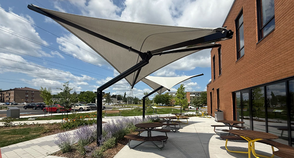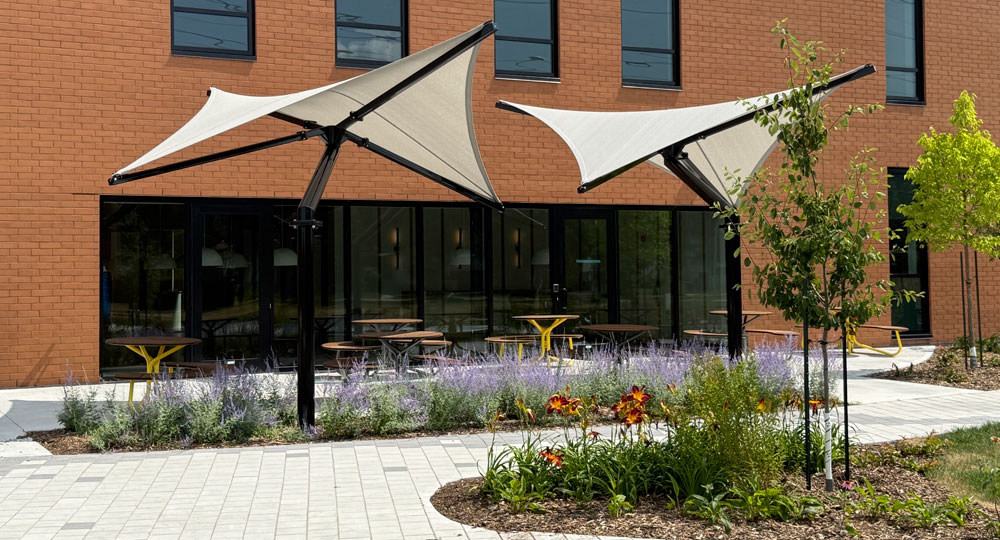 Shade Systems™ Single Post Pyramids and Single Post Umbrellas are cleverly engineered with just one central support post, making them ideal for smaller shaded areas. Perfect applications include poolside, at water parks, for seating by the playground, and even in a sandbox to keep toddlers cool and shaded. Single Post Pyramids and Hypar are available in sizes up to a generous 20’ x20’, while Single Post Umbrellas go up to a 25’ diameter.
