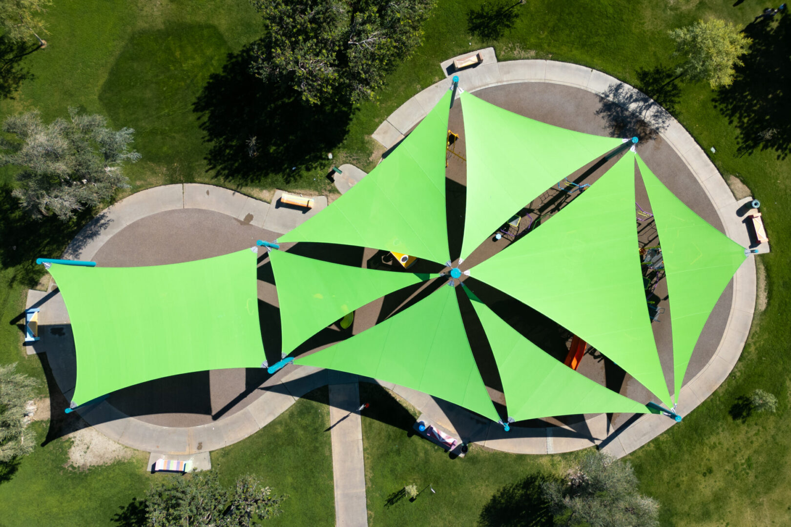 Located in sunny California, City of Palm Springs parks staff knew it’s essential to include sun protection for the playground at Victoria Park. The imaginative fabric Sails in striking Lime Green provide much-needed cooling shade for both children and parents alike.